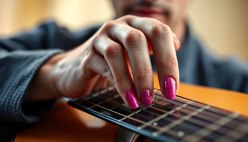 You might notice that long nails enhance fingerpicking techniques, allowing for a sharper attack and more tonal variety. They give you leverage when fretting notes, making it easier to hold down strings.