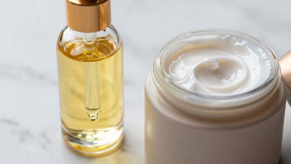 Choosing between face oils and moisturizers is like picking the right song for your mood—they both set the tone for your skin’s health. Remember, applying your moisturizer first creates a soft base, allowing your face oil to lock in hydration and nourishment. Think of it as sealing a precious gift in a box—you want to protect and preserve what’s inside. When used correctly, your skincare routine becomes a soothing dance that leaves your skin feeling radiant and loved.