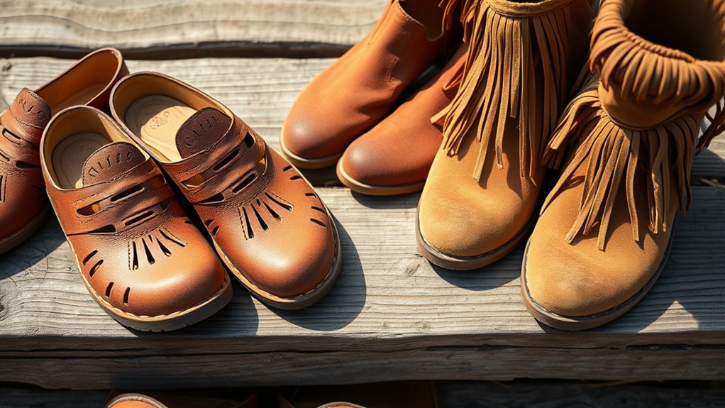 Imagine your leather footwear as a garden that needs nurturing. To keep it thriving, regularly apply leather conditioning to maintain suppleness and shine. Store your shoes in a cool, dry place away from direct sunlight, wrapping them in soft cloths or using shoe trees to help retain their shape. By caring for your boho leather shoes with love and attention, you make certain they stay beautiful and enduring for years to come.