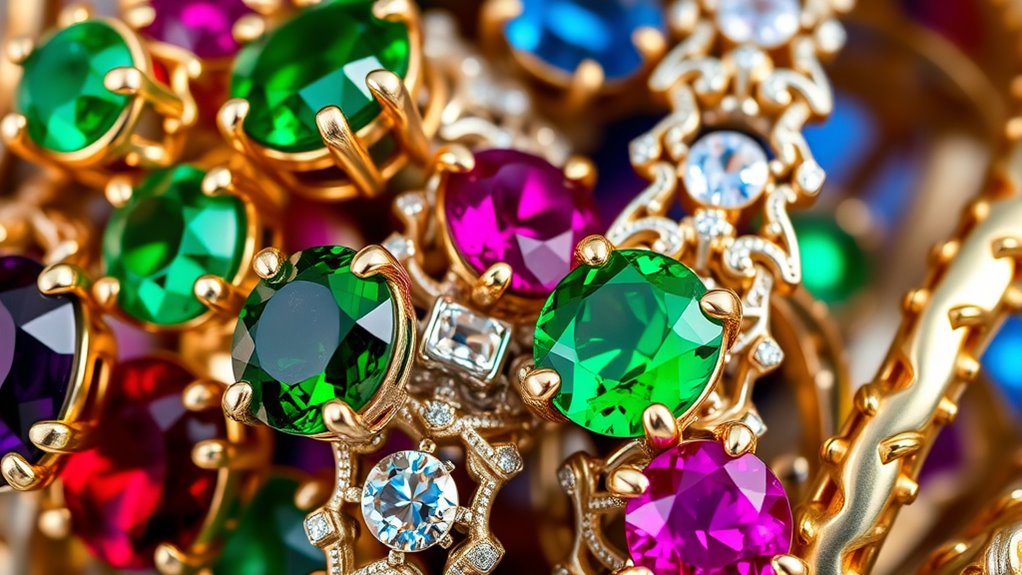 Did you know that over 60% of people choose jewelry based on cultural symbolism? You’re influenced by historical significance when selecting stones, as different cultures assign unique meanings—like jade symbolizing purity in Chinese tradition or turquoise representing protection in Native American culture. Your choices are deeply personal, often reflecting your heritage or beliefs, making jewelry more than just accessories but powerful symbols of identity and history.