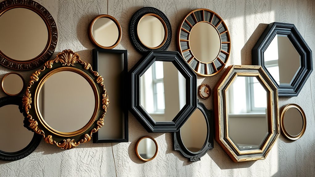 Ultimately, choosing the right mirror shapes and placing them thoughtfully can elevate your interior design from ordinary to extraordinary. It’s about creating a visual harmony that draws attention without cluttering the space. Whether you opt for a bold, oversized piece or a subtle, uniquely shaped mirror, the key is to guarantee your mirror placement highlights its best features. When done right, your statement mirror becomes a defining feature that reflects your style as much as your reflection.