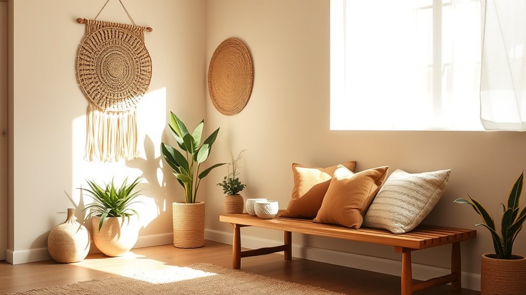 Ultimately, minimalist boho is about creating a space where texture contrast and a harmonious color palette work together to give you warmth and personality without clutter. It’s a style that invites you to embrace simplicity while celebrating the tactile richness of natural materials. By focusing on thoughtful choices and intentional accents, you craft a home that’s both stylish and welcoming—less but warmer.