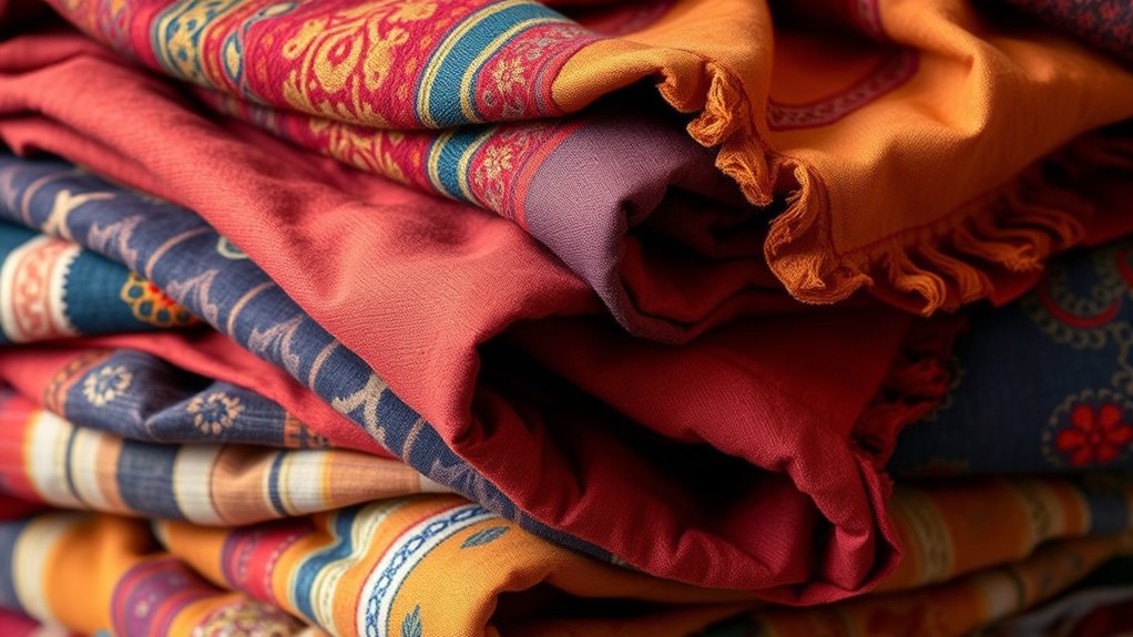 Layering throws, quilts, and Kantha blankets adds rich texture and visual interest to your space or outfit. Combining different fibers like chunky wool or lightweight cotton creates tactile depth and enhances warmth or breathability. Play with colors and patterns to evoke cozy or vibrant moods, and blend smooth with rough textures for dimension. Thoughtful layering not only boosts comfort but also showcases your personal style. Keep exploring—there’s so much more to discover about creating stunning textile combinations.