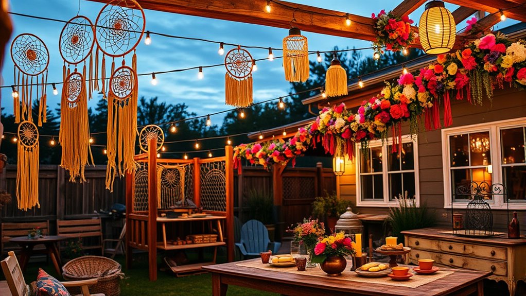 You can create a boho-inspired celebration on a budget by focusing on DIY crafts and vintage finds. Repurpose old textiles for vibrant banners or table runners, and craft centerpieces with wildflowers and candles. Hunt thrift stores or flea markets for unique vintage decor pieces that add character. Mix and match patterns and textures to achieve the boho vibe effortlessly without overspending, making your celebration both stylish and affordable.