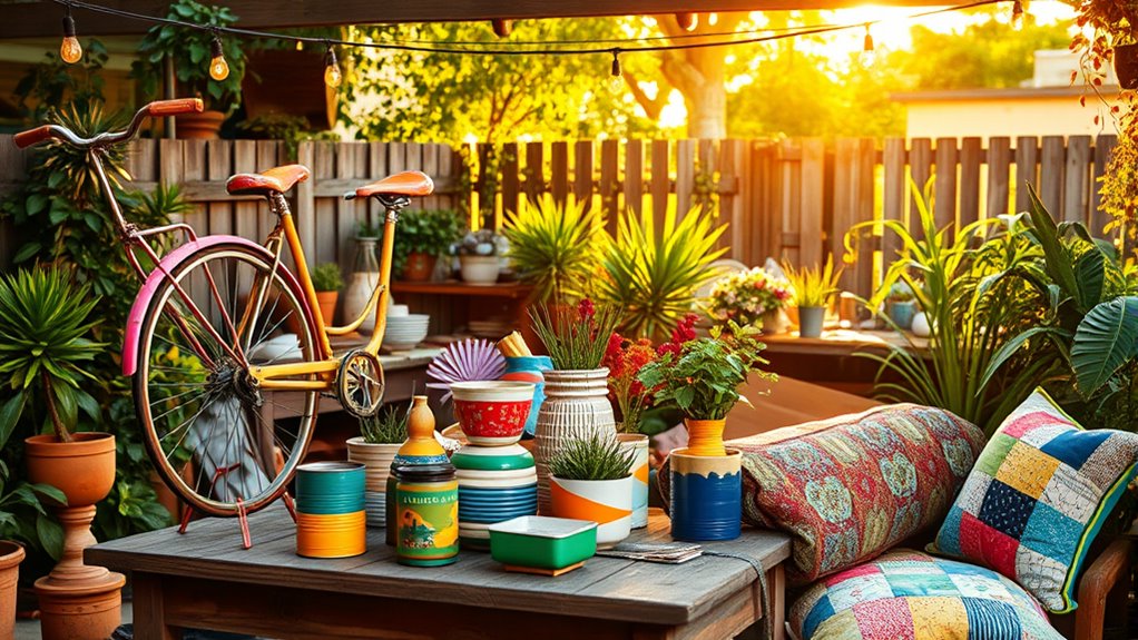 To monetize your upcycled creations, explore various strategies like selling at local markets, online shops, or social media platforms. Focus on pricing your art competitively by considering material costs, time, and uniqueness. You can also offer workshops or custom pieces for additional income. Consistently showcase your work, build a brand, and engage with your audience to boost sales and turn your passion into a sustainable income stream.