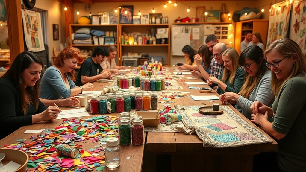 Starting a craft night with a creative club is a fantastic way to boost your skills, share ideas, and make new friends. Choose a theme, gather supplies, and invite friends who enjoy crafting. This environment encourages experimentation, teamwork, and personal expression. It also turns individual projects into inspiring shared experiences. As you build this community, you’ll discover new techniques and strengthen social bonds—if you keep exploring, you’ll uncover even more ways to make your craft nights inspiring.