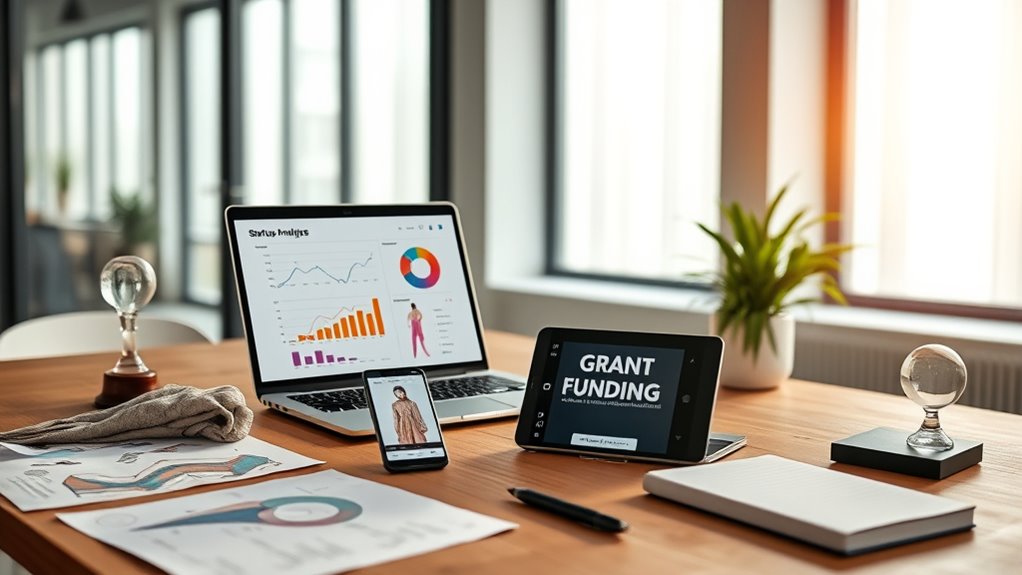 Did you know that over 60% of fashion startup grants have strict eligibility standards? These grant requirements often include having a solid business plan, demonstrating innovation, and meeting specific industry criteria. To qualify, you’ll need to review each grant’s eligibility standards carefully, which may also cover factors like location, stage of your startup, and sustainability goals. Understanding these requirements helps you prepare a compelling application and increases your chances of securing funding.