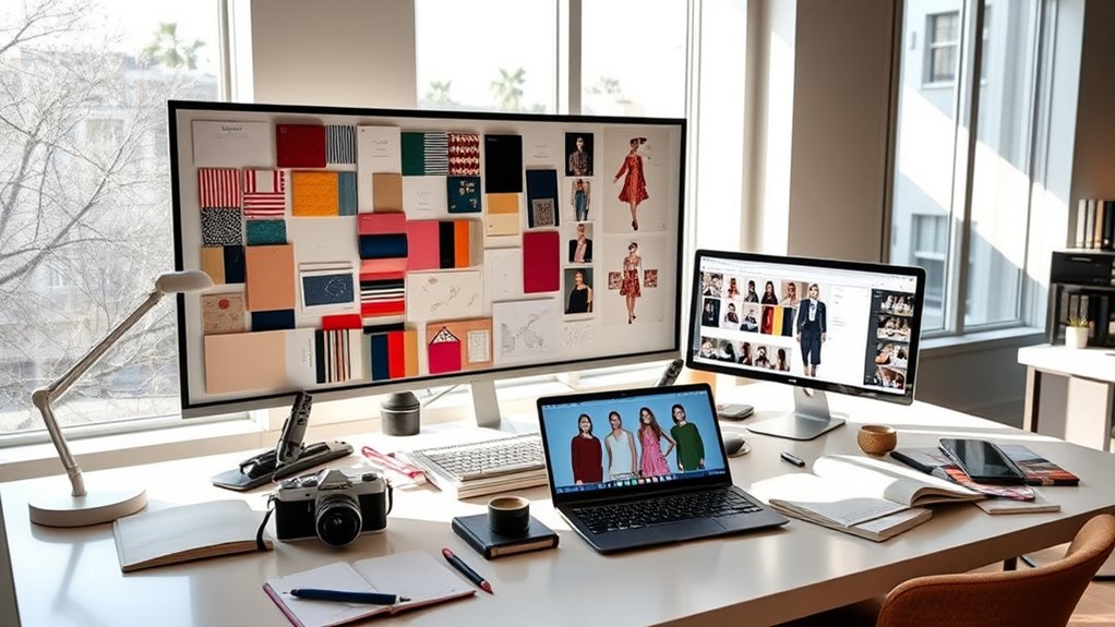 You predict future trends accurately by conducting thorough trend analysis and gathering deep consumer insights. You stay alert to social media, industry events, and cultural shifts, observing patterns and emerging styles. By analyzing data and understanding what consumers want, you can anticipate shifts before they happen. Staying curious and constantly updating your knowledge helps you spot trends early, giving you an edge in forecasting fashion’s next big movement.