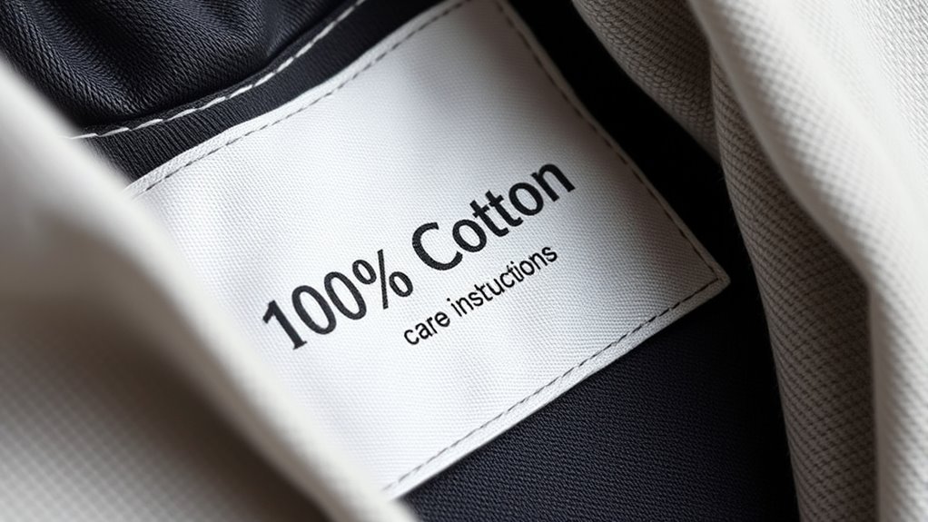 Fabric labels can sometimes be misleading or inaccurate due to label accuracy issues or misleading claims by manufacturers. You should always double-check the fiber content and care instructions, especially if something seems off. Keep in mind that labels might not always be perfectly up-to-date or truthful, so trust your senses and perform tests like burn tests or fabric feel assessments when in doubt. This way, you guarantee proper care and avoid potential fabric mishaps.