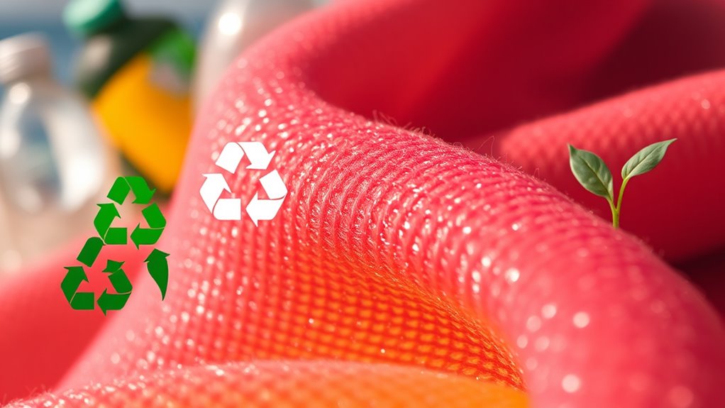 You might wonder how recycled polyester compares to virgin polyester in durability. Recycled polyester generally offers similar fabric longevity because it undergoes material reinforcement during manufacturing, making it just as resilient. Although some believe recycled options are weaker, modern processing guarantees the recycled fibers maintain strength and durability, so your garments will last. Overall, recycled polyester provides a sustainable choice without sacrificing the durability you expect from virgin polyester.
