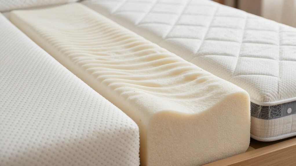 Like a trusty knight’s armor, latex mattresses tend to maintain cooler temperatures over time. You’ll find they excel in temperature regulation, unlike memory foam, which traps heat and warms up as the night progresses. While hybrids often blend cooling features, latex’s natural breathability helps you stay cool and comfortable longer, making it ideal if you’re prone to overheating during sleep.