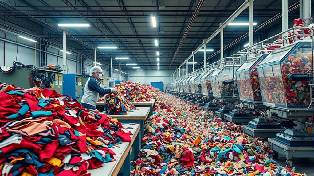 Have you ever wondered what happens to your old clothes once you discard them? When you toss out that worn-out shirt or outdated pair of jeans, they don’t just vanish. Instead, they often go through a series of recycling processes designed to give textiles a second life. A key part of this transformation involves creating sustainable fibers, which are vital for reducing waste and conserving resources. These fibers are produced from recycled textiles, offering an eco-friendly alternative to virgin materials. The process begins with sorting, where textiles are separated based on fiber type, color, and fabric quality. This step guarantees that only compatible materials are processed together, making the recycling more efficient. Proper sorting is crucial for maintaining the quality of the recycled fibers and ensuring successful reuse.