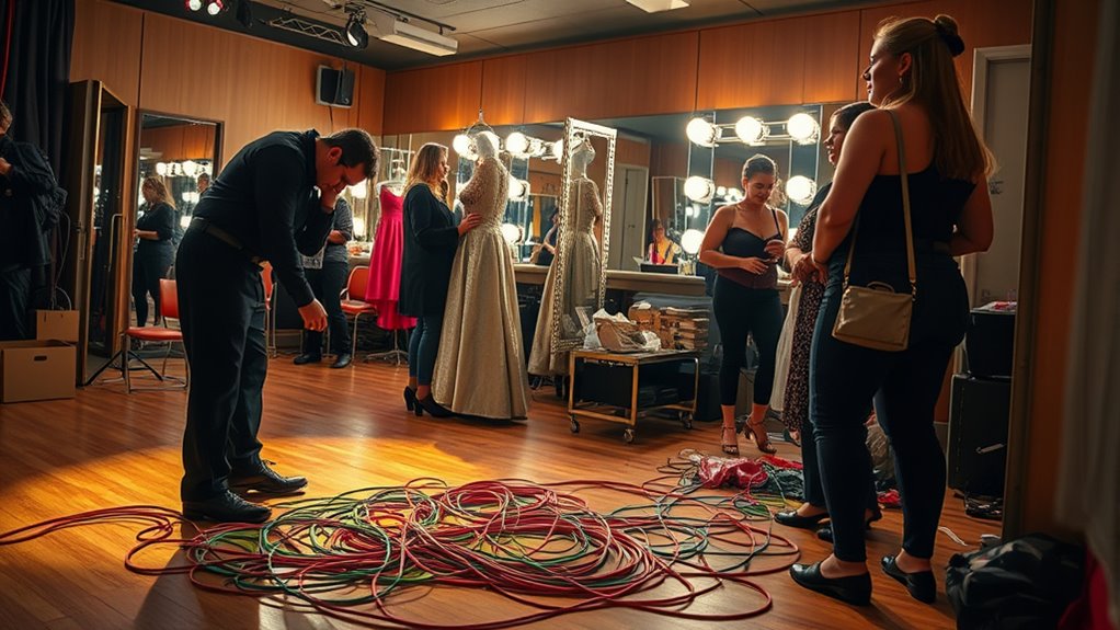 Think of backstage teams as a well-oiled machine, with each part syncing seamlessly. During a live event, you coordinate through clear communication, using walkie-talkies and cues to keep everyone on the same page. Stage management guides the flow, ensuring equipment setup happens smoothly and timely. You stay alert, adapt quickly, and trust your team to handle surprises, turning chaos into a harmonious performance.