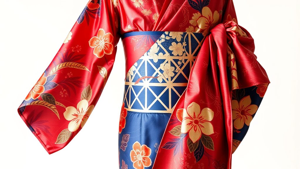Have you ever wondered what makes the traditional Japanese kimono so iconic? It’s not just the flowing fabric or vibrant patterns; it’s the intricate Kimono craftsmanship that transforms simple cloth into a masterpiece. Every kimono is carefully crafted by skilled artisans who dedicate hours to stitching, dyeing, and assembling each piece. This meticulous process guarantees that the kimono isn’t just clothing but a work of art, reflecting centuries of tradition and cultural pride. From selecting the finest silk to applying traditional dyeing techniques, the craftsmanship involved is a testament to Japan’s rich textile history. It’s this attention to detail that has helped the kimono endure as a symbol of beauty and artistry through generations. Additionally, the cultural significance embedded in each design deepens its importance beyond mere aesthetics.