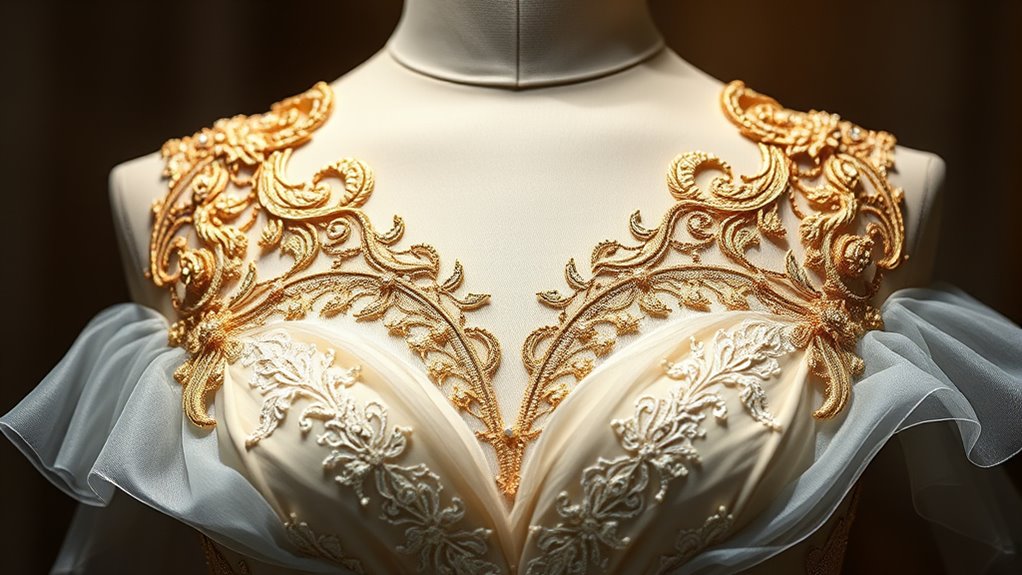 Qualifying as haute couture is a rigorous process that sets the most exclusive fashion houses apart from the rest. It’s not just about creating beautiful garments; it’s about adhering to strict standards that emphasize exceptional quality, craftsmanship, and a commitment to personalized design. When you think of haute couture, you should imagine pieces that are meticulously tailored to fit each client perfectly, often involving a custom design process that transforms fabric and ideas into wearable art. This isn’t mass production—you’re dealing with one-of-a-kind creations that demand the highest level of skill and attention to detail. Every stitch, seam, and embellishment reflects the exclusive craftsmanship that defines haute couture. Additionally, the use of high-quality materials ensures that each piece maintains its luxury and durability over time.