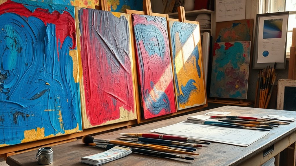 When selecting fabric for fittings, you focus on fabric selection by considering its weight, drape, and texture to match your design goals. You also guarantee pattern coordination so the fabric complements the overall aesthetic. Test samples in similar conditions, feel their quality, and evaluate how they behave during movement. This helps you choose the best fabric that aligns with your vision, ensuring a perfect fit and finish.