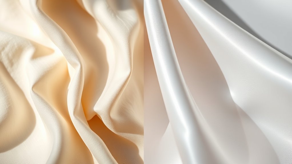 Thinking about skin allergies is like trying to find a gentle hug; natural fabrics often provide that comfort. They have hypoallergenic properties, meaning they’re less likely to trigger skin sensitivity or irritation. If you have sensitive skin, choosing natural fibers like cotton or silk can reduce allergic reactions and keep your skin happy. Unlike synthetics, natural fabrics breathe better, making them a smart choice for allergy-prone skin.