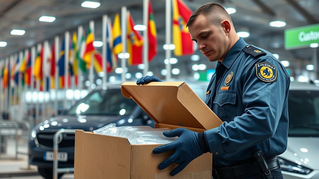 You should check for prohibited items before shipping cross-border, as Customs restrictions vary by country. Items like firearms, drugs, and certain electronics are often banned or limited. Always review your destination’s customs regulations to avoid delays or confiscation. If you’re unsure, consult the customs authority or shipping service for a list of prohibited items. Staying informed guarantees smooth delivery and compliance with all customs requirements.