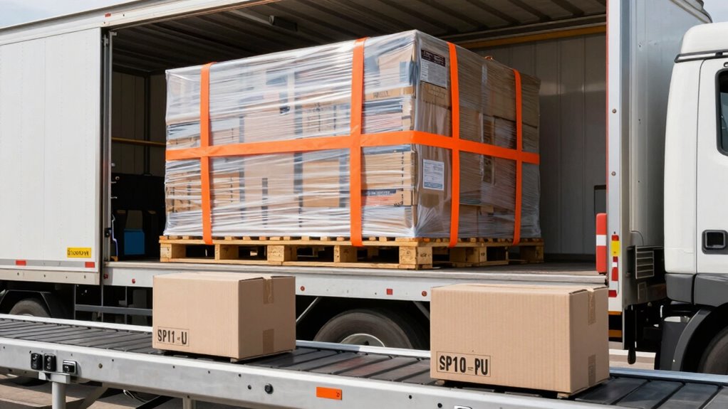 Have you ever wondered how to efficiently ship large, bulky items without hassle? Shipping big items can be tricky, especially when it comes to packaging challenges. These items often require special handling to prevent damage during transit. You’ll need sturdy, custom packaging that can withstand the rigors of freight or standard shipping. Proper packaging isn’t just about finding the right box; it involves securing your item with padding, bracing, and sometimes custom crating. This guarantees it arrives intact, saving you from costly replacements or repairs. Additionally, considering delivery insurance becomes vital for high-value or fragile items. Insurance provides peace of mind, covering potential damages or loss, which can be a real relief when dealing with oversized shipments. It’s worth investing in, especially when you’re shipping expensive equipment or delicate furnishings. Understanding product reviews and making informed choices can further help in selecting the best shipping options. When handling large shipments, Proper packaging is essential to ensure safe transit and minimize damage risks. Furthermore, choosing the right carrier can significantly impact the safety and efficiency of your shipment, especially with specialized handling services. A thorough understanding of shipping regulations can also prevent delays and additional costs during transit. To ensure smooth logistics, it’s helpful to familiarize yourself with shipping documentation requirements to avoid unnecessary hold-ups.
