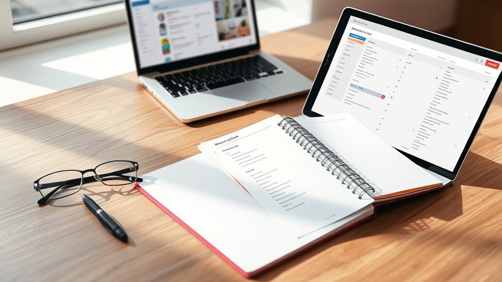 When managing your wishlist, tools like budgeting apps and digital wishlists can be real game-changers. Budgeting apps help you set spending limits and track your expenses, ensuring you stay on budget. Digital wishlists, on the other hand, let you save and organize potential purchases, giving you time to contemplate before buying. These tools make it easier to control impulse buys and prioritize what genuinely matters to you.