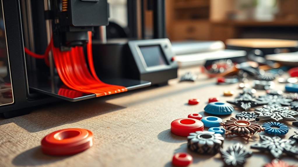 You’re wondering if eco-friendly filament options exist for home 3D printing. Yes, you can choose biodegradable filaments made from materials like PLA, which break down more easily. Recycled plastics are also available, offering sustainable options that reduce waste. These eco-friendly filaments help you create functional and durable items while minimizing environmental impact. So, you can print responsibly and contribute to a greener future with these sustainable choices.