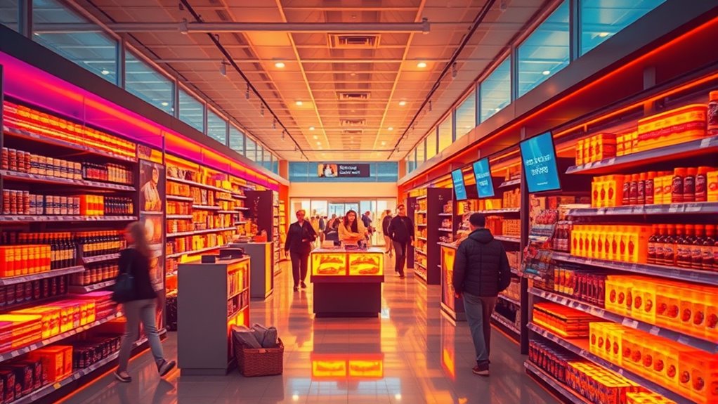 Heat-mapping sensors give you real-time insights into customer movement, showing where people spend the most time and which areas attract attention. This information helps you optimize store layout and product placement, boosting engagement and sales. You can identify high-traffic zones and adjust lighting, signage, or displays accordingly. By understanding customer flow, you make smarter space decisions. To find out how these strategies can transform your store, explore what else you can do.