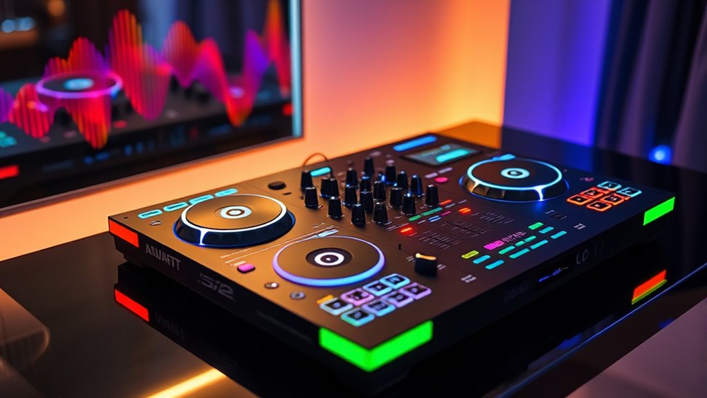 Choosing the right DJ controller setup can elevate your mixes and boost your confidence behind the decks. Did you know that 78% of DJs say that having the right equipment markedly improves their performance? Whether you’re just starting out or upgrading your gear, these options offer seamless control and creative freedom. Remember, the best setup is the one that feels intuitive to you—so take your time and find what inspires your next great mix.