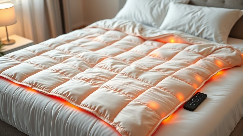 Energy-efficient electric blankets use less power than traditional heating methods, making them more cost-effective and eco-friendly. I find they provide targeted warmth right where I need it, instead of heating the entire room. This means I save money on energy bills while staying cozy. Plus, they heat up quickly and keep consistent warmth, giving me more control and comfort without wasting energy.