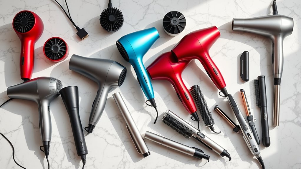 Choosing the right hair dryer or styling tool can truly transform your look, much like a trusty sword in a knight’s arsenal. Whether you prefer a quick, salon-quality blowout or a gentle, ionic finish, there’s a tool here for you. Think of it as upgrading from a quill to a fountain pen—your styling game gets sharper and more refined. So go ahead, pick your weapon and conquer those bad hair days once and for all!