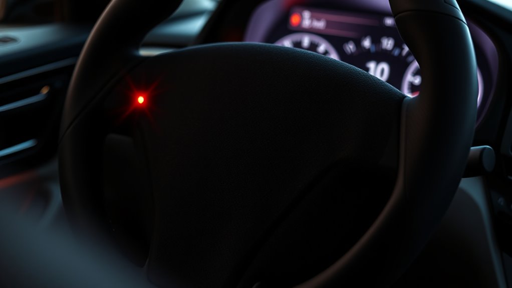 Safety features are a top priority when selecting a heated steering wheel cover, especially since electrical components are involved. I look for covers with an overheat protection thermostat to prevent excessive temperatures, ensuring safe use. Insulated, flame-retardant materials are vital—they reduce fire risk and provide peace of mind if electrical issues occur. A secure, non-slip inner lining helps keep the cover in place, maintaining control while driving. Automatic temperature regulation is essential to deliver consistent warmth without overheating. Ultimately, I verify that the electrical components meet safety standards and are designed for 12V vehicle systems, minimizing electrical hazards. Prioritizing these safety features helps me enjoy warmth without compromising safety on the road.