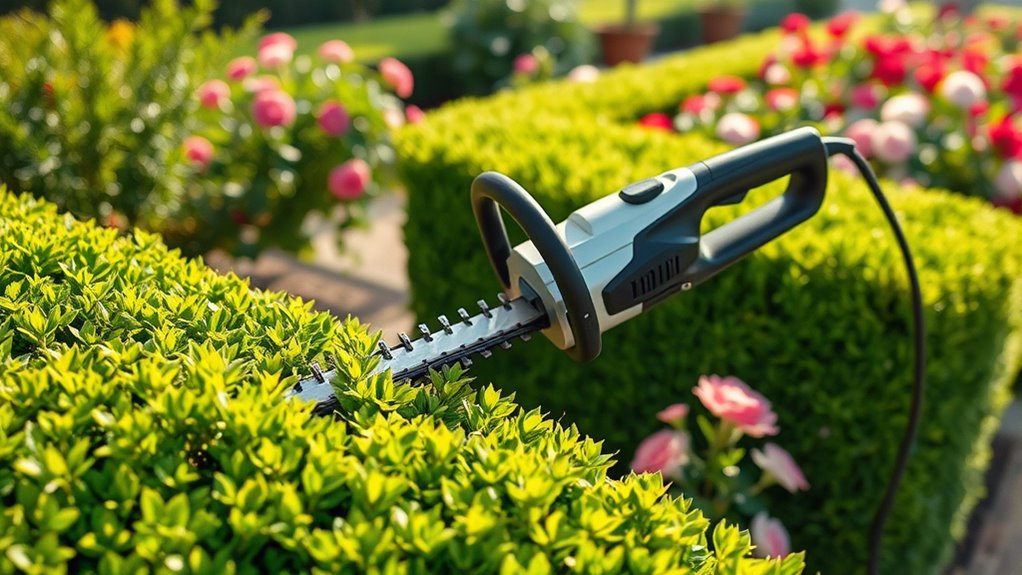 Electric hedge trimmers tackle tough, thick branches with confidence. I find them fantastic for heavy-duty pruning because they deliver powerful punches without the fuss of gas. While some models are more suited for light trimming, many electric trimmers now boast robust blades and strong motors that handle dense greenery with ease. They’re reliable, rapid, and ready to restore your garden’s grand, glorious greenery—making heavy-duty pruning hassle-free and satisfying.
