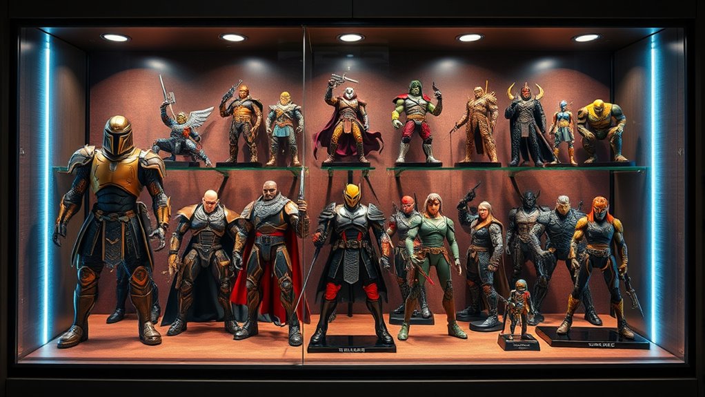 If you’re looking to elevate your collection, I’ve found some of the best high-end action figures and collectibles that combine quality, detailed design, and display versatility. From premium figures like Marvel Carnage and Dracula to themed sets like Titan 13 and Star Wars Mandalorian, these pieces are built for collectors and enthusiasts alike. They feature advanced articulation, durable materials, and stunning visuals. Keep exploring to uncover the top options that can truly level up your collection.