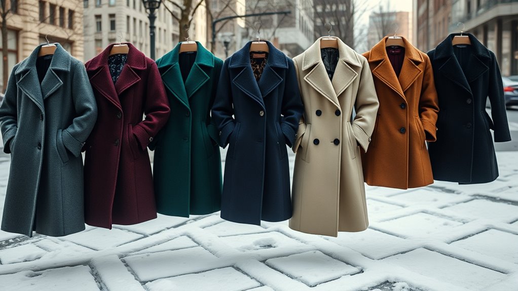 Did you know that advanced insulation and smart layering technology truly boost warmth in luxury coats? I’ve found that features like down insulation, thermal linings, and even heated elements with rechargeable batteries make a huge difference. These innovations adapt to changing temperatures, keeping me comfortable without adding bulk. So, when choosing a high-end winter coat, look for those tech-savvy details—they’re game-changers for warmth and overall comfort.