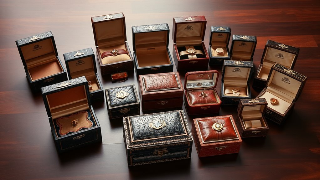 I believe different personal styles call for different jewelry box designs. If you’re classic, go for elegant wood or vintage-inspired pieces. For a modern look, sleek acrylic or minimalist metal boxes work well. Boho lovers might prefer textured leather or colorful fabric-lined boxes. I recommend choosing a design that reflects your personality, making your jewelry storage both functional and a true expression of your style.