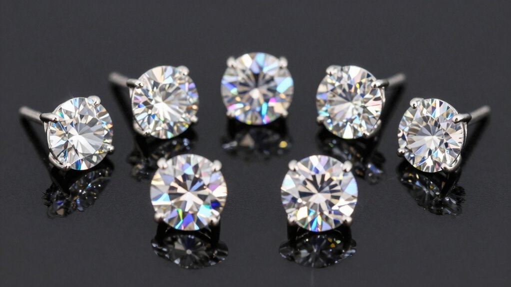 When selecting 2-carat lab-grown diamond stud earrings, I consider several key factors to make certain I get the best value and quality. From gem quality standards and certification importance to metal compatibility and style options, each aspect influences my choice. Budget also plays a role, helping me balance beauty with affordability.