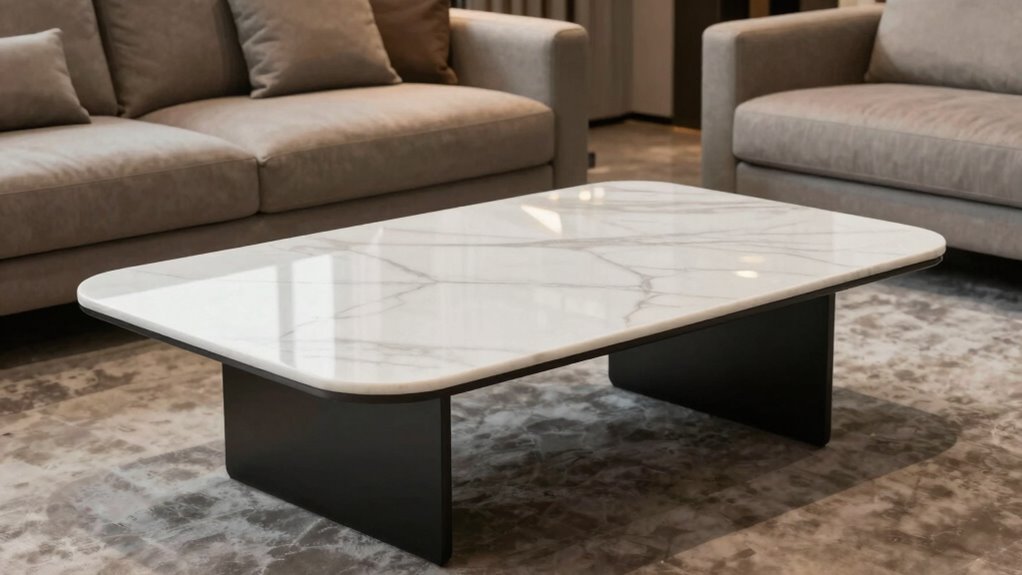 Marble coffee tables require regular sealing to protect against stains and spills, ideally every 6 to 12 months. I avoid placing hot items or acidic substances directly on the surface, and I immediately wipe up any spills with a soft cloth. Using coasters and placemats helps prevent damage. Gentle cleaning with a damp cloth and mild soap keeps my marble looking polished, preventing scratches and maintaining its elegance over time.