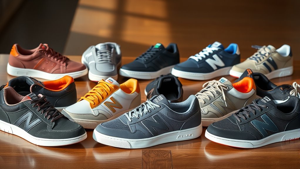 Choosing the right men’s casual sneakers hinges on finding the right balance of support and cushioning to keep your feet comfortable and protected. Proper support means features like cushioned insoles, arch support, and shock-absorbing midsoles, which help reduce foot fatigue during long walks or standing. Cushioning materials such as EVA foam, memory foam, or gel inserts absorb impact and enhance comfort. However, support levels vary—shoes with reinforced arch areas and firm heel counters provide better stability for extended wear. It’s essential to avoid overly soft cushioning that compromises support, as this can lead to discomfort or foot issues over time. Ultimately, the right combination of support and cushioning prevents pain, reduces injury risk, and promotes better foot health during casual activities.
