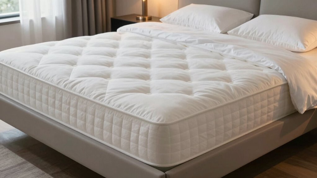 Effective temperature regulation is essential for a comfortable night’s sleep on a premium memory foam mattress queen. Modern mattresses use gel infusions, gel-infused foam, or phase-change materials to dissipate heat and keep the surface cool. Advanced airflow features like egg crate designs or ventilated foam layers improve breathability, ensuring consistent temperature control throughout the night. Materials such as bamboo charcoal, graphene, or natural fiber infusions absorb moisture and heat, preventing overheating and night sweats. Zoned support systems not only offer targeted pressure relief but also help maintain a cooler surface in areas like the shoulders and hips. Incorporating these technologies can considerably enhance sleep quality by reducing overheating, resulting in more restful, uninterrupted sleep every night.