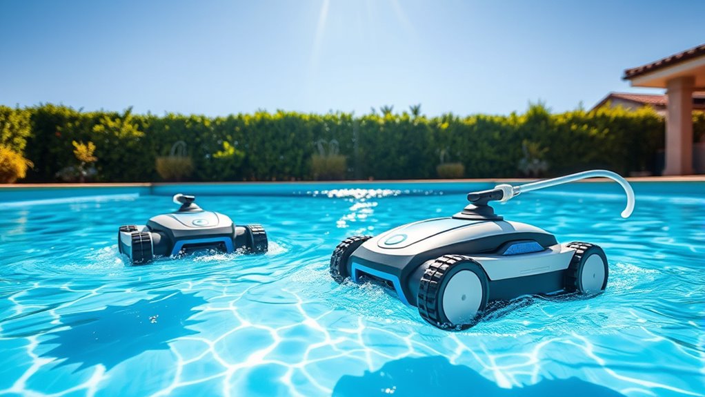 Choosing the right pressure pool cleaner can make all the difference in keeping your pool spotless. For example, I once struggled with a manual cleaner that never quite got all the debris, but switching to a Polaris MAXX transformed my cleaning routine. Remember, consider your pool size and debris level. A good pressure cleaner isn’t just a purchase—it’s an investment in hassle-free, sparkling water all season long.