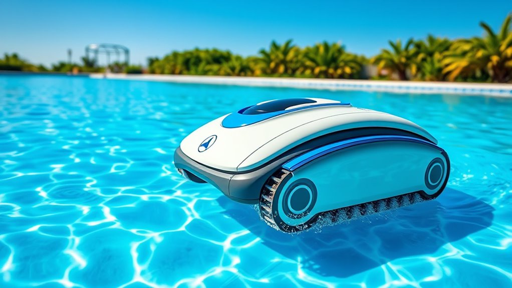 If you’re looking for the 15 best robotic pool cleaners in 2025, I’ve found top options like the Dolphin Nautilus CC Plus, AIPER Scuba S1, and WYBOT C1, which excel in efficiency, navigation, and surface compatibility. These models can handle different pool sizes, shapes, and surfaces while offering features like Wi-Fi control, self-parking, and cordless operation. Keep exploring to discover detailed reviews and find the perfect cleaner for your pool.