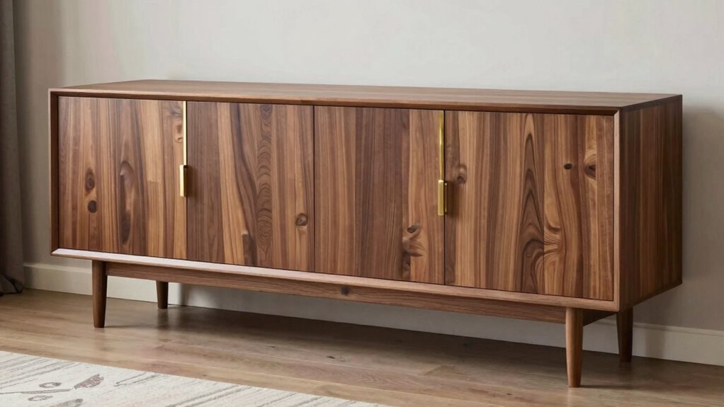 A solid wood sideboard buffet can last a lifetime if cared for, like a trusty steed that ages gracefully. Typically, you can expect it to serve you well for 20 to 50 years, sometimes even longer with proper maintenance. Regular cleaning, avoiding excess moisture, and occasional polishing keep it looking timeless. Think of it as a family heirloom, growing more cherished with each passing year.