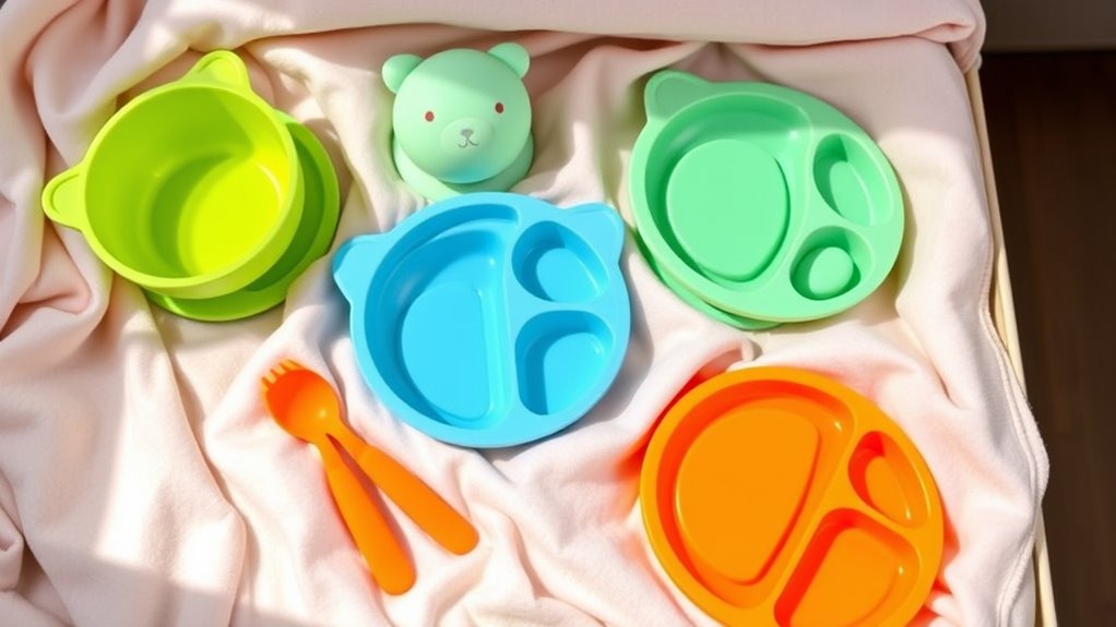 Choosing the right silicone baby feeding set depends heavily on your child’s age and developmental stage. For infants just starting solids, look for smaller, gentle-edged plates and bowls that are easy to handle and safe for their gums. As your child grows into a toddler, opt for sets with larger, ergonomic handles that promote independence and make self-feeding easier. Features like suction bases and divided sections are helpful for different stages, helping your child develop motor skills while minimizing messes. Materials should be soft and flexible, suited for teething and oral sensitivity. Adjustable or removable parts, such as lids or snack cups, cater to changing eating habits. Selecting age-appropriate designs ensures mealtime is safer, more engaging, and supports your child’s growing abilities.
