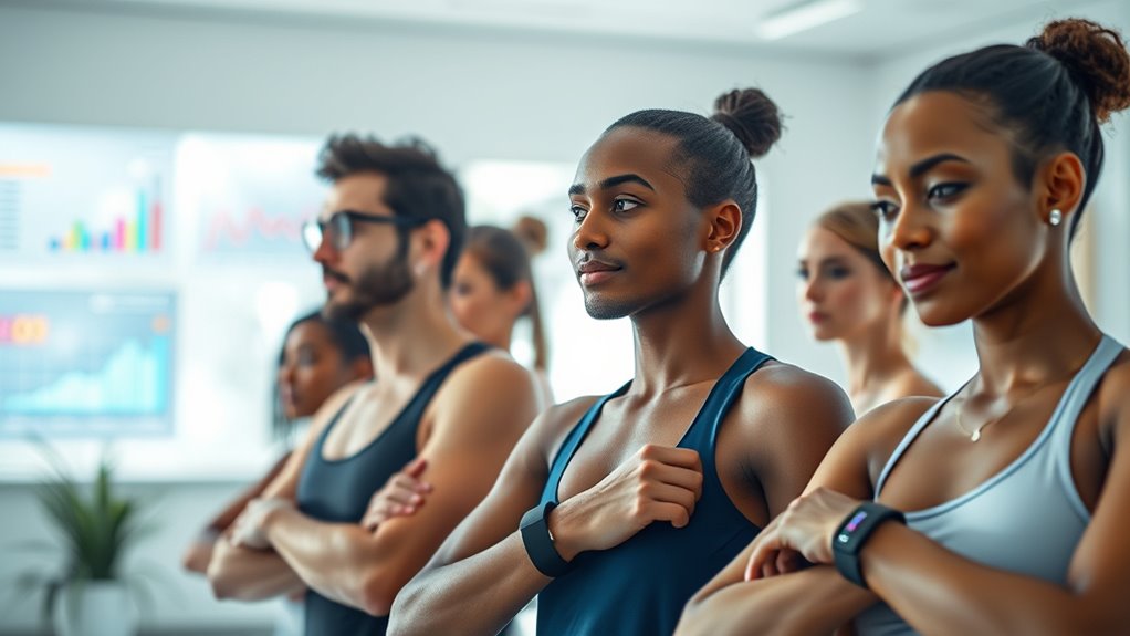 Choosing the right smart health monitor depends heavily on its monitoring range and modes. I look for devices that support the specific metrics I need, like heart rate, blood pressure, blood oxygen, sleep quality, or activity tracking. It’s important they offer various modes, such as continuous 24/7 tracking, spot measurements, or exercise-specific options, to match my routine. I prefer monitors with multiple activity modes—over 120 sports options or sleep stages—to guarantee versatility. Automatic detection is a plus, so measurements are recorded during daily activities or sleep without manual input. Lastly, I verify they provide detailed trend analysis and data logging across modes, assisting me in tracking my progress over time accurately. This ensures I get comprehensive insights tailored to my health goals.