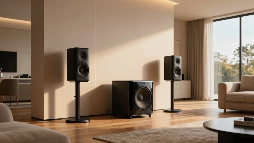 Sound systems handle multi-room synchronization seamlessly by using Wi-Fi or mesh networks to connect all speakers. I find that they sync audio perfectly across rooms, allowing me to play, pause, or adjust volume simultaneously. Many systems also let me customize zones or play different content in each room. With app controls and voice commands, managing multi-room audio becomes intuitive and effortless, ensuring a cohesive listening experience throughout my home.