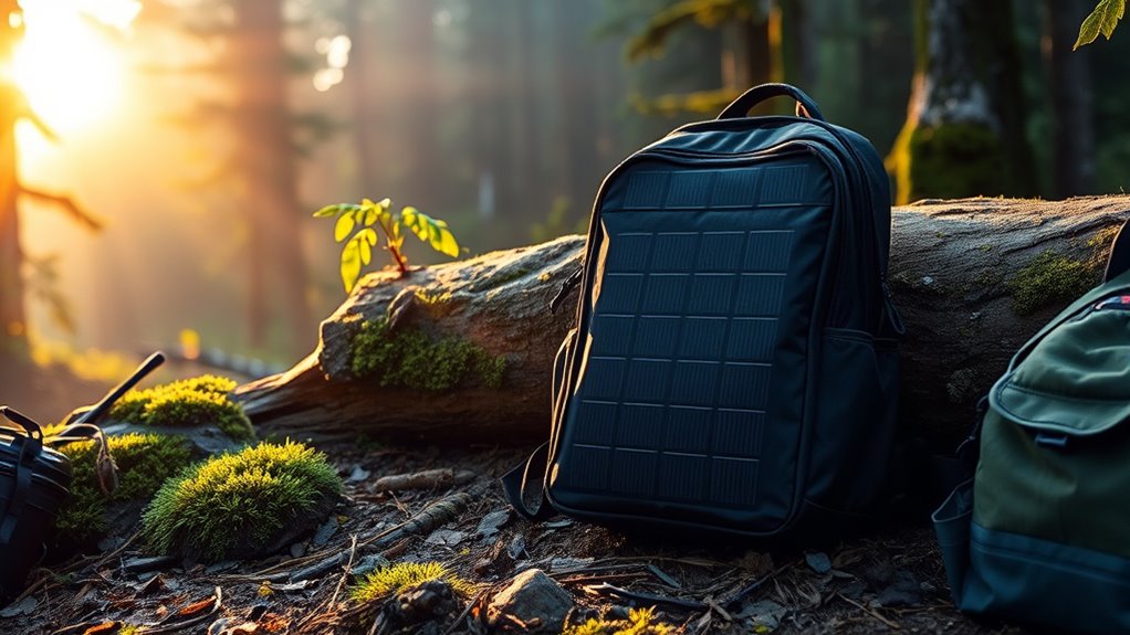 Ever wondered what makes a solar backpack charger deliver faster and more reliable power? It all comes down to the solar panel’s wattage; higher wattage panels convert sunlight into energy more promptly. The type of solar cells matters too—monocrystalline panels are generally more efficient than polycrystalline ones, boosting charging speed. The number and arrangement of panels affect how much surface area is exposed to sunlight, increasing overall efficiency. To maximize charging speed, the panels need direct sunlight at about a 45-degree angle, with minimal shading. Additionally, fast-charging technologies like USB Power Delivery or QC 3.0 can substantially improve how quickly your devices charge once connected. Together, these factors determine how quickly and reliably your solar backpack keeps your devices powered off-grid.
