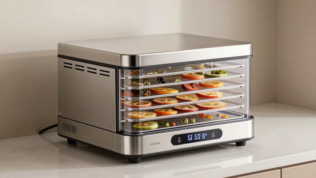 Choosing the right stainless steel food dehydrator is like finding the perfect recipe—you want something reliable, efficient, and tailored to your needs. With options like digital controls, timers, and spacious 10 trays, you’re equipped to dry everything from jerky to fruit. Trust me, investing in a quality machine makes food preservation feel like a breeze. So, pick one that suits your kitchen and let your culinary creativity soar!