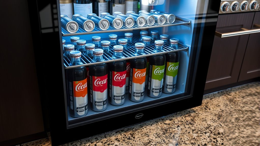 Yes, these coolers can often accommodate customized or non-standard bottle sizes, but it varies by model. I recommend checking the internal dimensions before purchasing to verify your unique bottles fit comfortably. Some coolers feature adjustable shelves or flexible storage options, making space for larger or oddly shaped bottles. Always confirm the specifications or contact the manufacturer for tailored storage solutions, so your beverages stay perfectly chilled without a hitch.