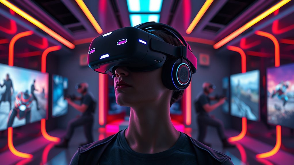 Did you know that over 70% of gamers prefer headsets compatible with their existing devices? When choosing a VR headset, I recommend checking its compatibility with your current gaming console or PC. Look for models with versatile connectivity options like USB-C or HDMI, and guarantee they support your device’s specifications. This way, you avoid frustration and get the most immersive experience without needing new equipment.