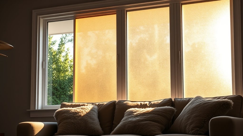 Have you ever worried that window insulation films might block your view or make a room feel darker? Transparent films are a great solution, as they allow for clear visibility, letting in natural light and preserving outdoor views. They prevent the need for removal or replacement during different seasons, which is ideal for renters wanting minimal disruption. The transparency of these films also affects the room’s aesthetic; high-quality options offer near-invisible coverage, blending seamlessly with your decor. Plus, many transparent films include UV protection, reducing sun damage to furniture and flooring while maintaining visibility. When choosing a film, consider its clarity rating to ensure it meets your needs—so you can enjoy insulation without sacrificing brightness or the view outside.