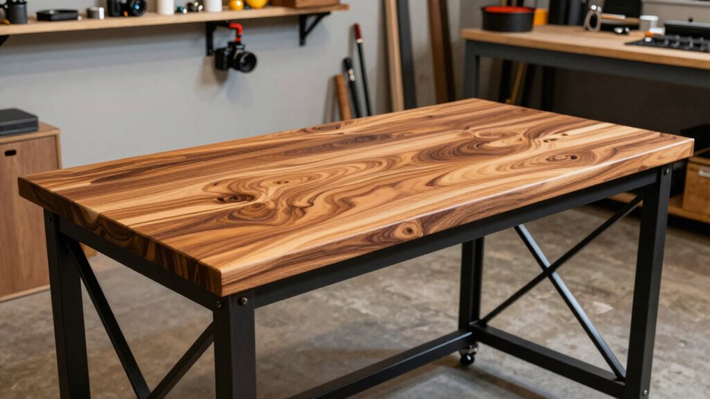 Hardwood workbenches are quite durable, but they don’t quite match the strength of metal surfaces. I find that hardwood tops resist scratches and dents better than metal, offering a warm, natural work area. However, for heavy-duty tasks involving high impacts or extreme conditions, metal is more resilient. I recommend hardwood for comfort and aesthetics, but if you need maximum durability, metal surfaces might be the better choice.